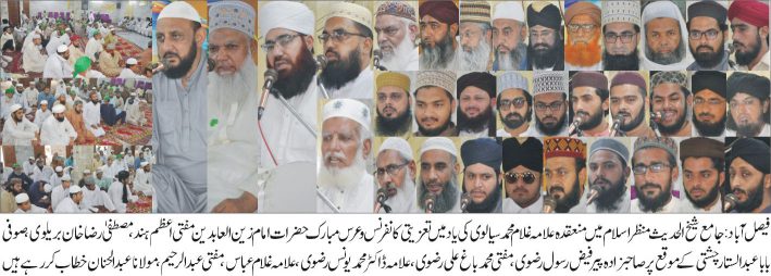 فیصل آباد(سٹی رپورٹر ) اسلاف کے نظریات اہلسنت و جماعت کیلئے مشعل راہ ہیں ۔ ناموس ختم نبوت ناموس رسالت ناموس صحابہ و اہلبیت ہمارے ایمان کا حصہ ہے ۔ نوجوان نسل کو اپنے اکابرین کی تعلیمات سے روشناس کرانا وقت کی اہم ضرورت ہے ۔ ان خیالات کا اظہار سجادہ نشین آستانہ عالیہ محدث اعظم پاکستان صاحبزادہ پیر قاضی محمد فیض رسول رضوی ،علامہ مفتی باغ علی رضوی، ناظم امتحانات علامہ غلام عباس ، ڈاکٹر مفتی محمد یونس رضوی ، مفتی عبدالرحیم ،علامہ عبدالحنان سیالوی و دیگر نے عرس امام زین العابدین حضور مفتی اعظم ہند مصطفی رضا خاں بریلوی ،بابا جی عبدالستار اور تعزیتی ریفرنس سابق چیئر مین قرآن بورڈ علامہ غلام محمد سیالوی کے موقع پر اظہار خیال کرتے ہوئے کیا ۔ مقررین نے مزید کہا 7 ستمبر 1974 کا دن تاریخی اعتبار سے انتہائی اہمیت کا حامل ہے ۔اس دن اہلسنت کے علماء کرام اور مشائخ عظام نے مشترکہ جدوجہد کے ذریعے قادیانیوں کو غیر مسلم قرار دیا ۔ پروگرام میں شہدا ختم نبوت کی بلندی درجات کیلئے دعائیہ تقریب کا اہتمام کیا گیا اور تحریک ختم نبوت کیلئے قربانیاں پیش کرنے والوں کو خراج عقیدت پیش کیا ۔ اس موقع پر علامہ عابد نسیم ظفر ، مولانا محمد افضل ، صاحبزادہ محمد سلیم رضا اور سید حیدر رضا شاہ نے بھی خطاب کیا ۔